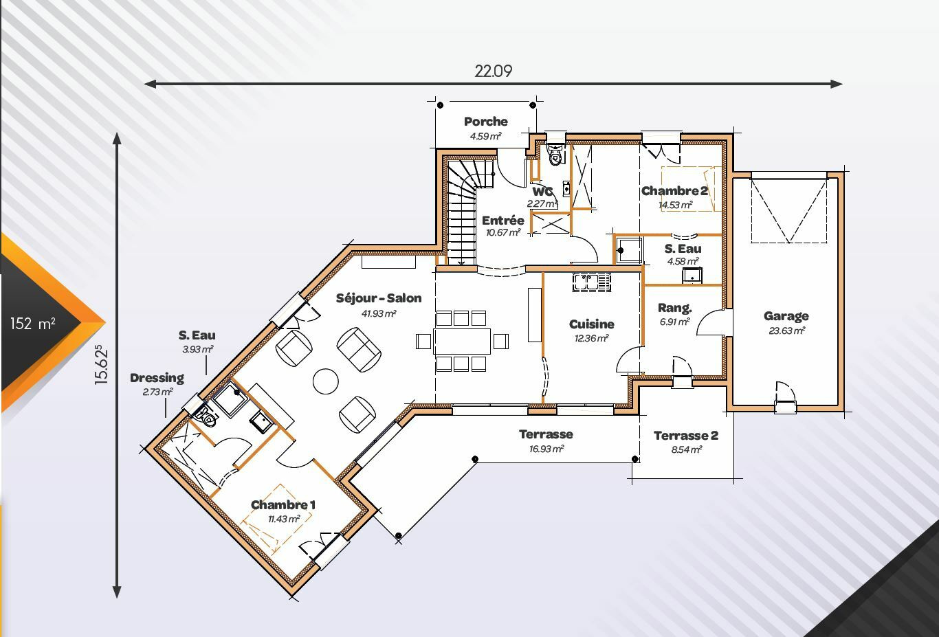 - Surface 152 m2