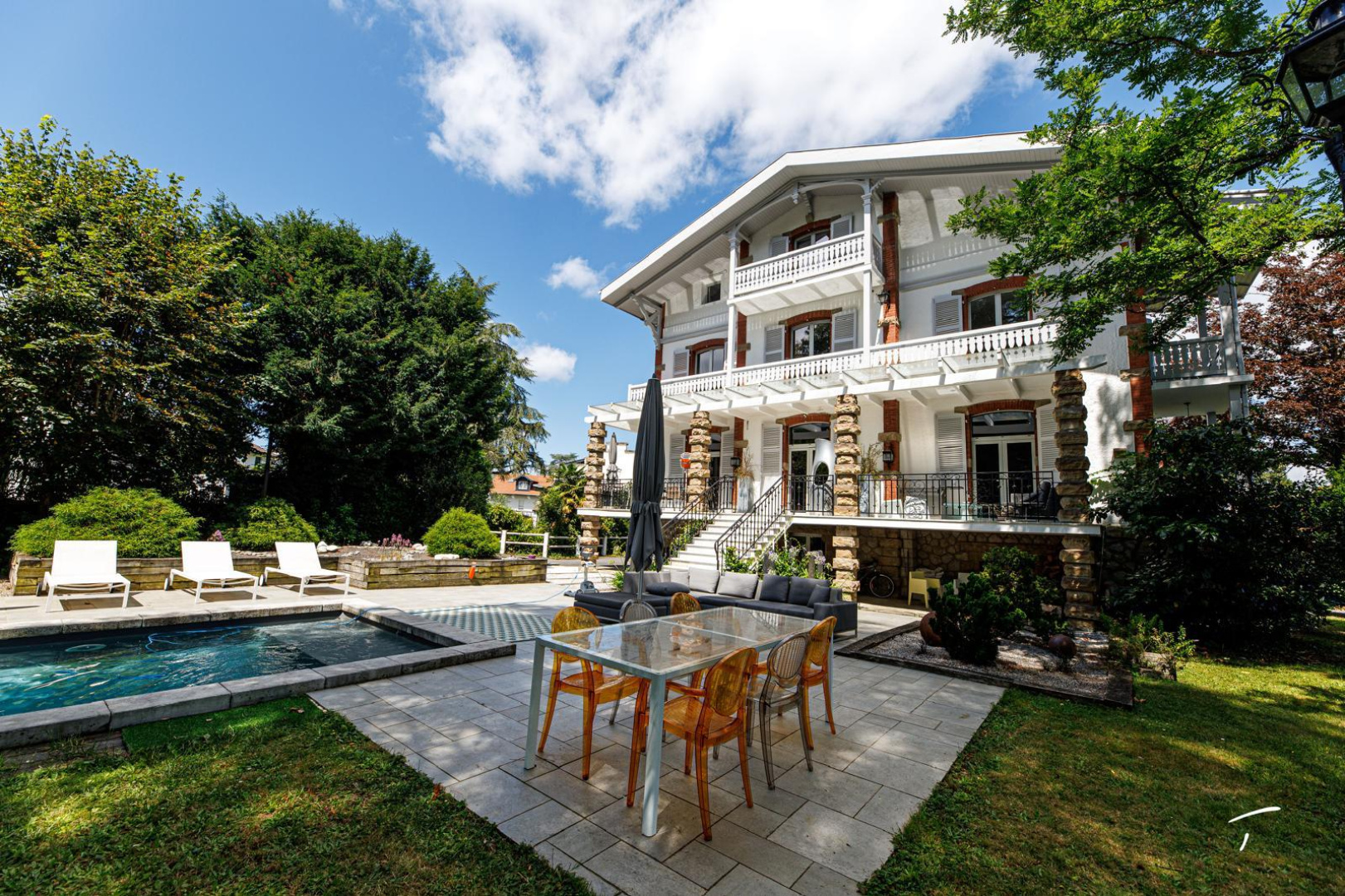 SC Immobilier vous propose de venir vous installer au cœur du très recherché quartier Trespoey de Pau. La propriété est à quelques minutes à pied du centre-ville de Pau, de l’école des Lauriers, de l’école et collège privé Saint Ursule, du lycée Saint Cricq. Après avoir franchi son majestueux portail d’entrée, la villa Mérindol se dévoile, superbe, au fond de l'allée. Le parc aux essences variées et généreuses offre un cadre de vie proche d'une vie à la campagne, pas un bruit ne se dégage, on se sent immédiatement très bien, au calme. Dès le premier coup d’œil, il est évident que rien ne manque à cet extérieur sans vis à vis pour profiter de la vie et de merveilleux moments en famille, entre amis. La piscine longue de 12 mètres est sécurisée par un volet roulant, le jacuzzi et le sauna ainsi qu’une salle de sport avec douche et toilettes sont bien sûr au rendez-vous. Les véhicules seront aussi protégés grâce au garage double ; un grenier permet des rangements supplémentaires. Edifiée sur 3 niveaux, la maison a été entièrement rénovée par un architecte d’intérieur palois reconnu et profite de son exposition plein sud. Le rez de chaussée propose une grande cuisine de standing avec un ilot central mais aussi un espace repas plus convivial autour d’une grande table ; plus loin un salon double avec cheminée ; les pièces sont baignées de lumière, et donnent toutes sur le jardin et sa piscine. Le premier étage a bénéficié des mêmes attentions ; 4 belles et grandes chambres avec terrasses dont deux donnant sur la piscine, deux salles de bain et un toilette; toutes les pièces sont ici aussi baignées de lumière. Le dernier étage abrite une immense suite parentale avec sa salle de bain, son dressing et toilette et une nouvelle grande chambre actuellement à usage de salle de jeux. Enfin, le sous-sol intégral ravira les petits et les grands puisqu’il propose diverses possibilités ; salle de jeux ( billard, baby foot, ping pong), salle de cinéma. Il abrite déjà la buanderie. SC Immobilier vous propose de venir visiter sans tarder ce bien rare actuellement à la vente sur Pau et son plus beau quartier, et préparer ainsi dès maintenant l’été prochain.
