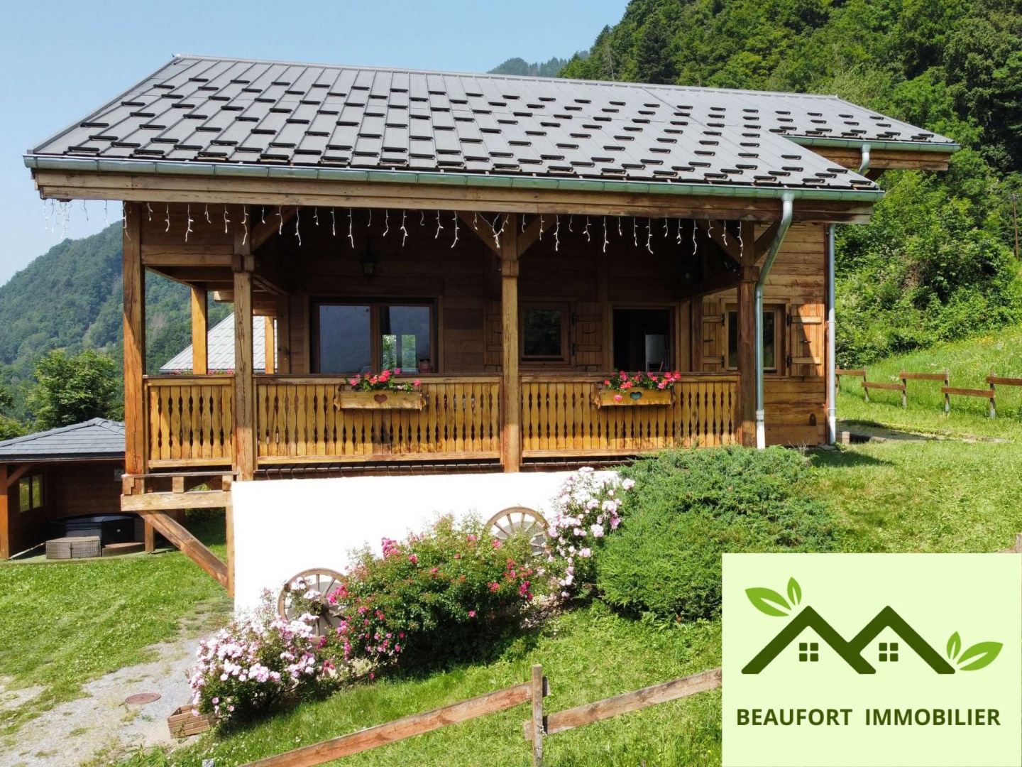 À vendre – Grand chalet familial avec vue dominante – Villard-sur-Doron (73270) + Terrain constructible Prix de vente : 830 000 €(Honoraires d’agence à la charge du vendeur) Situé sur le coteau de Villard-sur-Doron, à 5 km de Beaufort, 15 minutes d’Arêches-Beaufort et 25 minutes des Saisies, ce chalet individuel construit en 2008 offre environ 200 m² de surface de plancher, hors garage, sur une parcelle constructible, paysagée et peu pentue. Le chalet est bien isolé, bâti avec des matériaux de qualité et raccordé au tout-à-l’égout. Composition : Rez-de-chaussée bas : Un garage fermé permettant de stationner une voiture, communiquant directement avec l’intérieur Une entrée Une salle de jeux (pouvant faire office de pièce de vie) Une chambre avec salle de bain et WC privatifs Un WC indépendant Un sauna avec salle de sport Une lingerie Un local à ski Un escalier distribuant le rez-de-chaussée haut Rez-de-chaussée haut : Accès possible depuis l’intérieur ou la terrasse Une grande pièce de vie ouverte : espace repas, séjour avec poêle à bois Une cuisine entièrement équipée Une chambre avec salle de bain privative Un WC indépendant Accès direct à une immense terrasse et à un large balcon abrité, exposé Sud-Est, offrant une vue dominante sur la vallée Un escalier distribue l’étage Étage : Une chambre avec salle de bain et WC indépendant Une seconde chambre avec salle de bain et WC indépendant Une troisième chambre avec salle de bain et WC indépendant Un dégagement Une mezzanine ouverte sur le vide sur séjour, pouvant faire office de sixième chambre d’appoint La mezzanine ainsi qu'une chambre ouvrent sur un balcon extérieur Aménagements extérieurs : Grande terrasse couverte Terrain de pétanque Espace barbecue paysager Jacuzzi abrité Un garage indépendant Terrain situé en zone constructible, possibilité d’y construire un second chalet Informations complémentaires : DPE : Consommation énergétique annuelle estimée entre 2 520 € et 3 490 € (prix moyens indexés sur les années 2021-2023 – Réf. ADEME : 2573E1886390L) ERP (état des risques du 07/06/2025) : Bien situé dans une commune faisant l’objet d’un arrêté préfectoral relatif aux risques naturels, miniers et technologiques (inondation, sismicité de niveau 4 – moyenne). Anomalies électriques signalées dans le diagnostic : dispositifs de protection inadaptés, matériels vétustes ou partiellement défectueux – rapport disponible Bien hors copropriété Taxe foncière 2024: 1800€ Vidéo de présentation sur demande Bien présenté par Nicolas Duc-Goninaz, agent immobilier – Agence Beaufort Immobilier, titulaire de la carte professionnelle CPI 7301 2020 000 045 246.