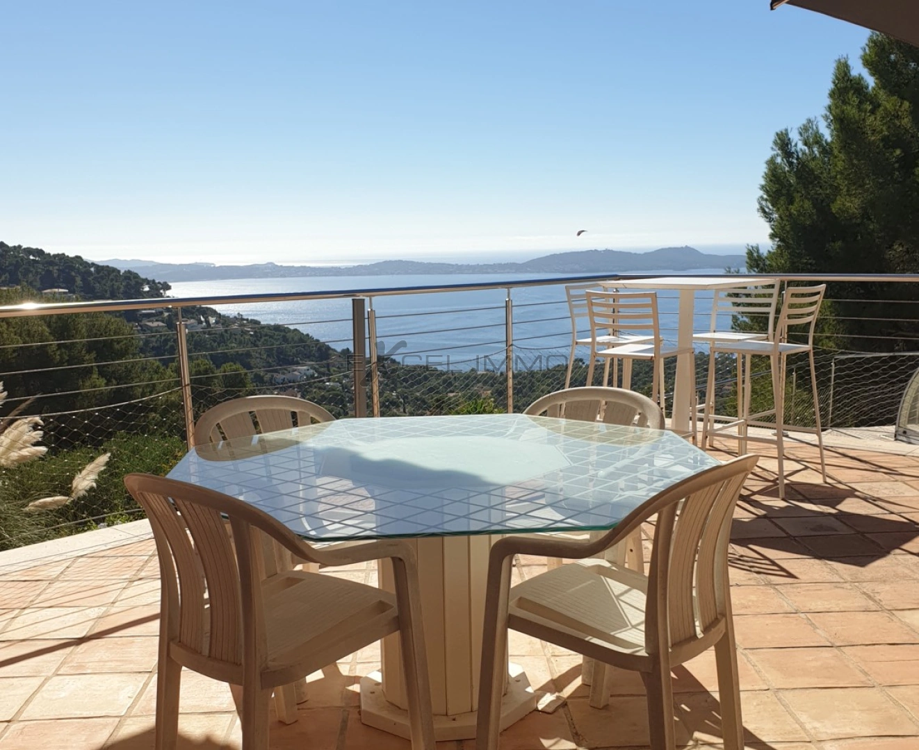 Vente villa 6 pièces sur un terrain de 1490 m2 à Carqueiranne Cette magnifique propriété de 220 m2 environ vous accueille sur un plateau composé d'une immense cuisine et arrière cuisine, un salon avec coin cheminée et un séjour, baies à galandages pour toutes les pièces, donnant sur une vue mer époustouflante de beauté. Vous serez hypnotisé par ce lieu de sérénité au calme absolu Deux chambres avec leur salle d'eau et bain.Sur un second plateau, un appartement de 90 m2 pour famille et amis disposant d'une cuisine et pièce de vie avec terrasse vue mer deux chambres et salle d'eau.En position dominante avec la vue mer et espace vert, ce petit coin de paradis accentué par une vaste terrasse de 250 m2, accès à la piscine couverte (12x4) , vous permet un agencement de plusieurs espaces au soleil de convivialité et à la discrétion absolue.Terrain paysagé, Grand garage et nombreux espaces de rangements. Bien d'exception. Contacter le 04 94 65 12 29